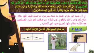 الحكمة من مشروعية الصيد. درس تعريف الصيد وأحكامه للصف الثالث المتوسط. التعامل مع الآخرين للصف الثالث الابتدائي. درس شروط ما يصاد به للصف الثالث المتوسط.